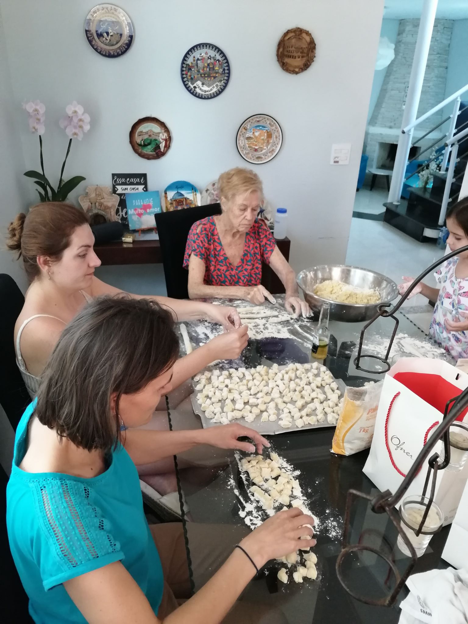 - De dames maken gnocchi met de hand naar grootmoeders recept
