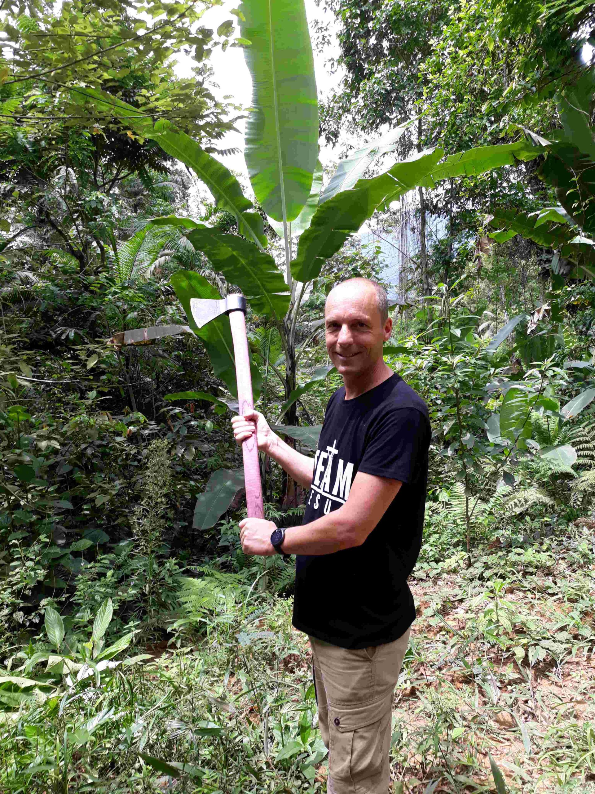 - Arjan gaat een kokosboom omhakken