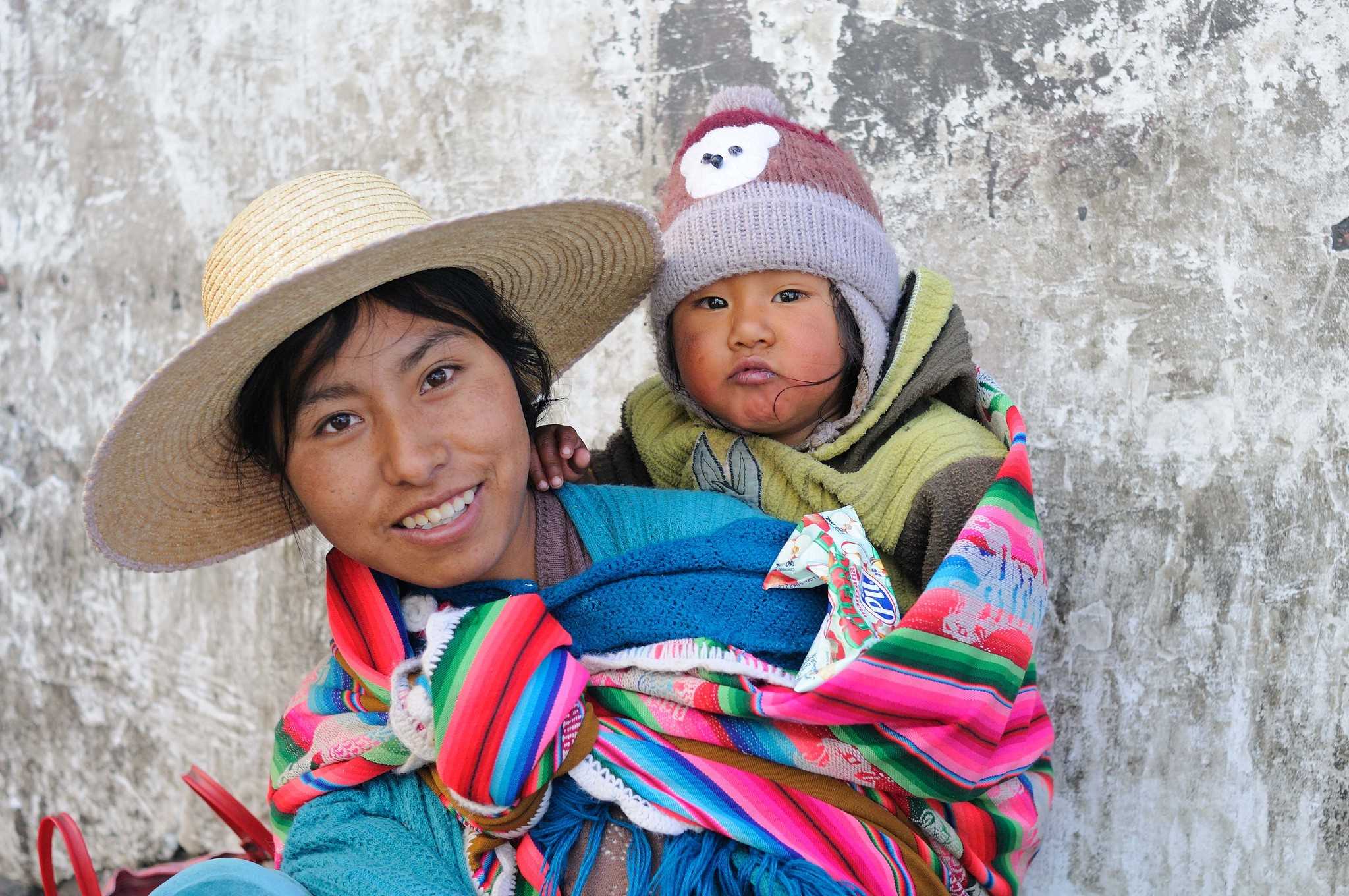 Bolivianen zijn heel vriendelijke mensen en meer ingetogen dan Brazilianen. Ze zijn wat kleiner van stuk met wat ronde bolle gezichten, wat zo typerend is voor Indiaanse volken. Mooie mensen. Ook zie je hier meer klederdracht. Vrouwen met een geplooide rok, een gekleurde draagzak op de rug en een hoed op.