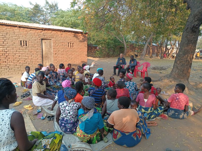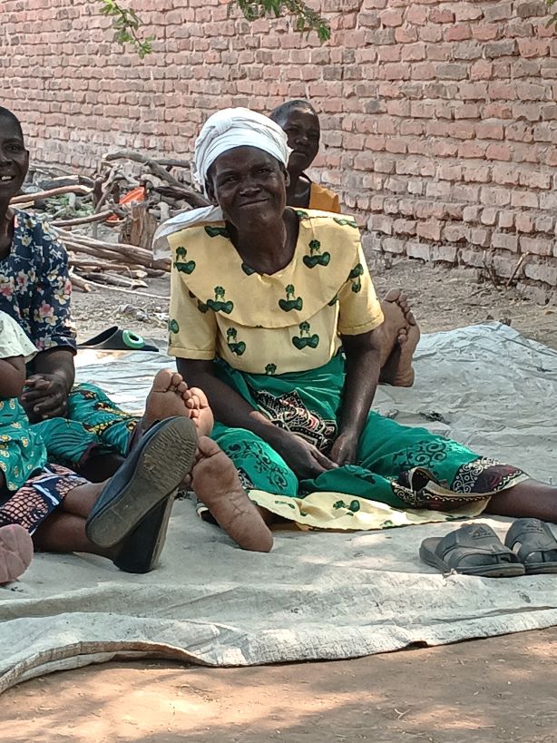 Wij kregen onder andere de vrouwengroep onder onze hoede. Hoe simpel kan het zijn. Zittend in de schaduw op een zeil op de grond met zo af en toe een kip die met kuikens langs komt paraderen en wat geiten die mekkerend voorbij lopen.