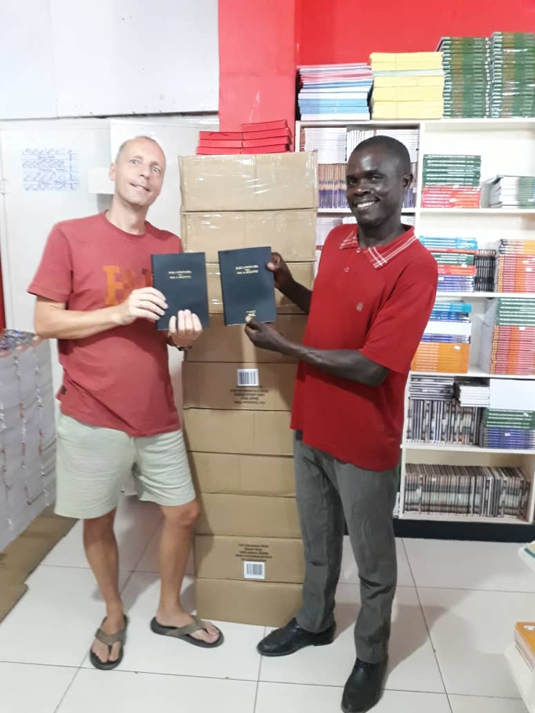 We besloten toch maar naar het centrum te gaan en een aantal keer geld te gaan pinnen. Je moet wat. Maar onderweg in het stadsbusje kwamen we langs het gebouw van de Bijbelbond. Ondanks dat we een bestelling bij de boekenwinkel hadden staan, besloten we toch even navraag te doen. En ja hoor, zij hadden een pinapparaat en omdat het zo’n grote bestelling was, kregen we voor elk kerkje een kinderbijbel en liedboek erbij. Dank U Heer! Hij komt met de oplossing!