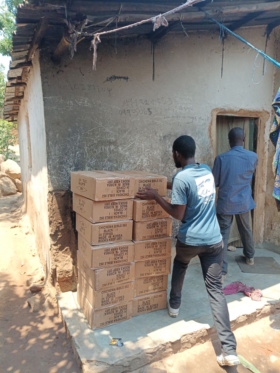 Opnieuw zag de Bijbelbond ons deze week weer verschijnen voor de 2e lichting Bijbels. Dit keer 14 zware dozen, liedboeken en kinderbijbels. Met een oud rammelend busje brachten we dit op een ochtend al hobbelend over de onverharde rotsige ‘weg’ de berg op waar Byson woont. De mannen stonden al klaar om de dozen op hun hoofd over het geitenpaadje naar het kerkje van Byson te brengen.
