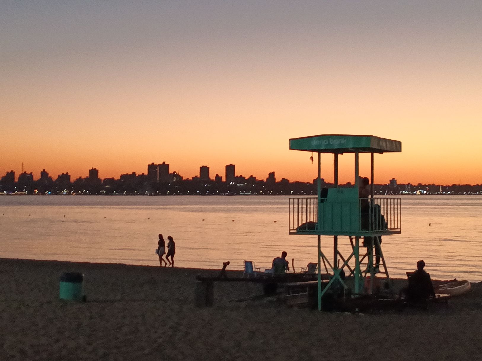 Met temperaturen die hier nu oplopen tot 36 graden gingen we kort voor zonsondergang naar het strand voor een heerlijke duik in het zoete water.